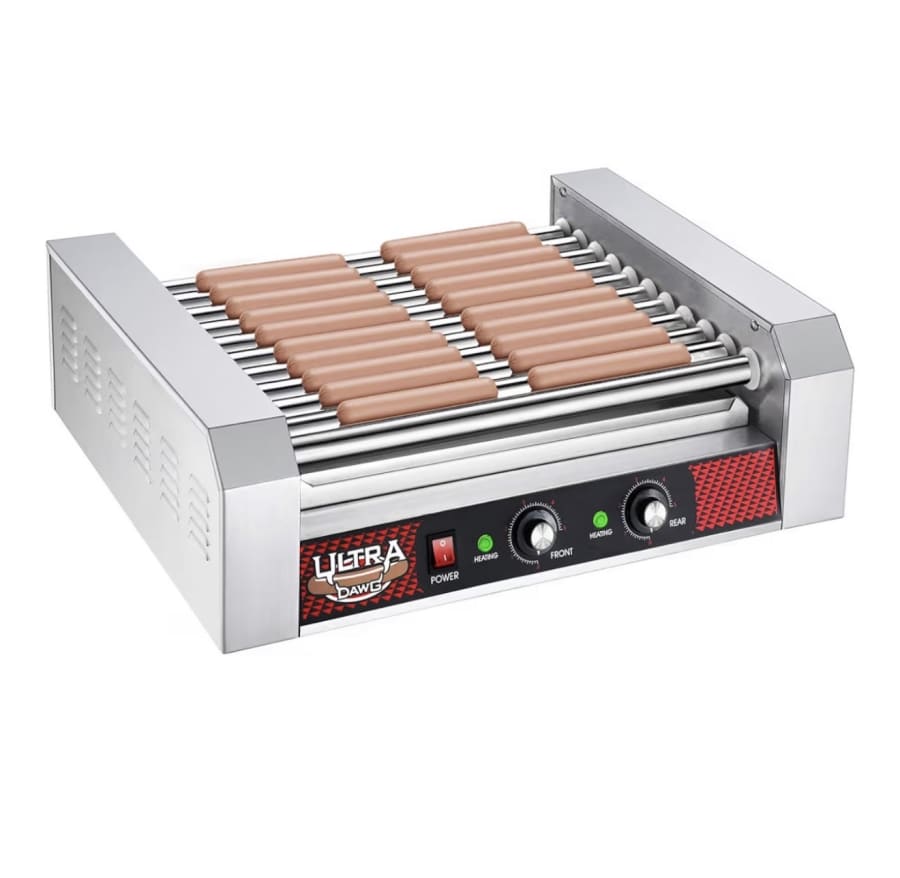Hot Dog Grill with 11 Stainless Steel Rollers and Hood – Great Northern